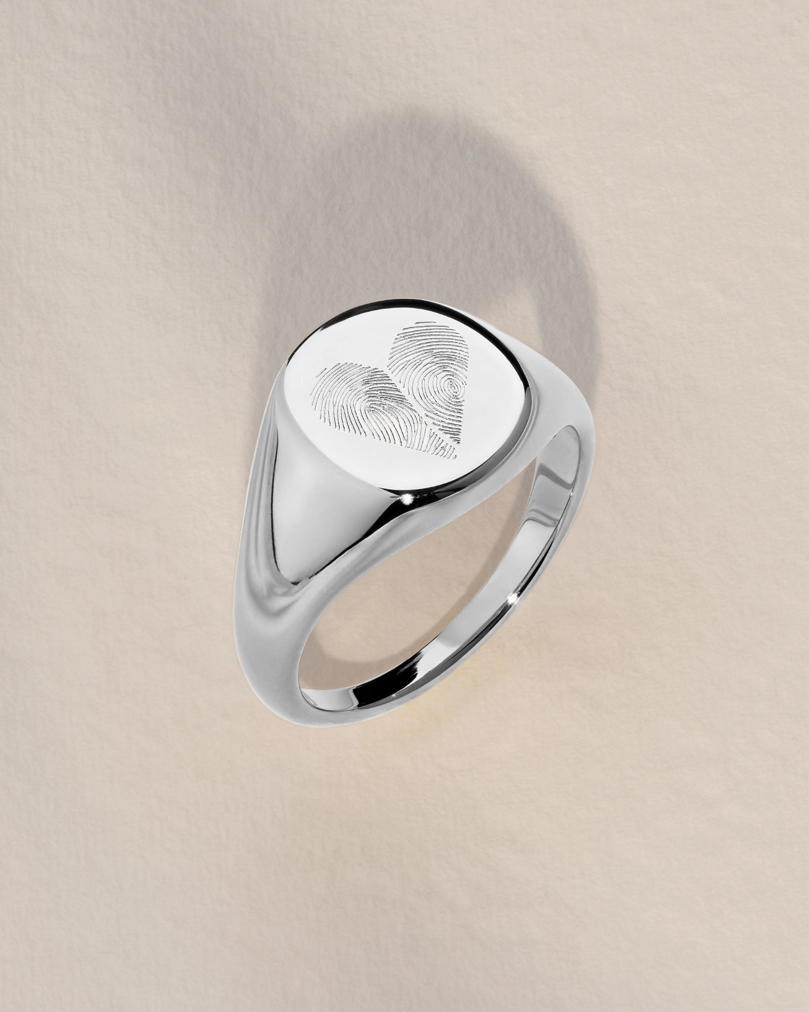 Our Heart Duo Fingerprint Signet Ring is a modern keepsake. Versatile, personal, and crafted to carry the imprint of someone you never want to be without.